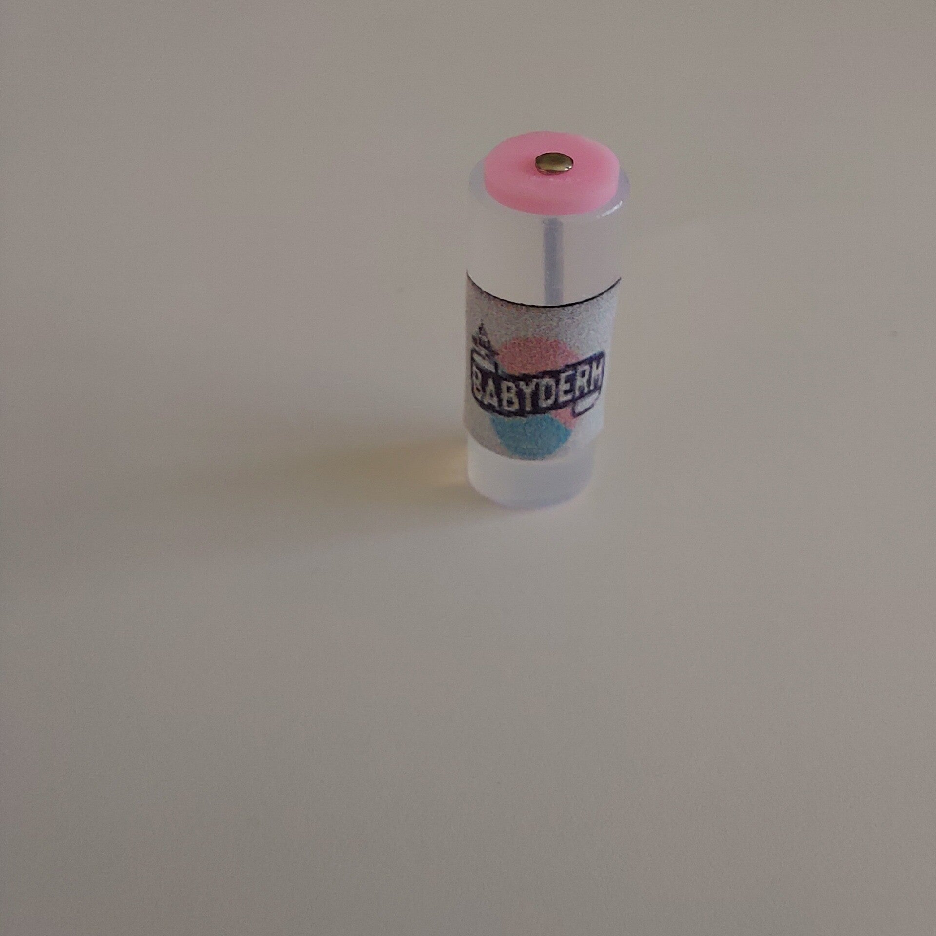 half doorzichtig flesje met etiketje en aan de bovenkant een roze of blauw dopje