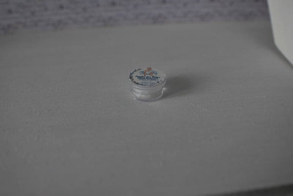 Een heel klein potje met babypoeder en leuke afbeelding erop.