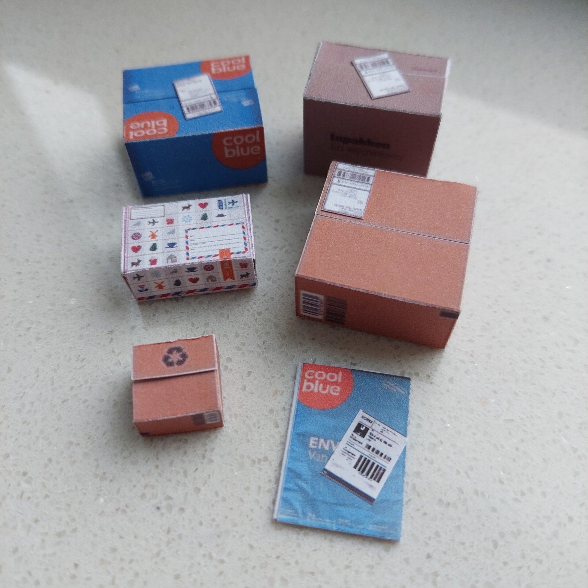 Setje met lege doosjes, een setje bestaat uit 5 doosjes en 1 envelop zie de foto.