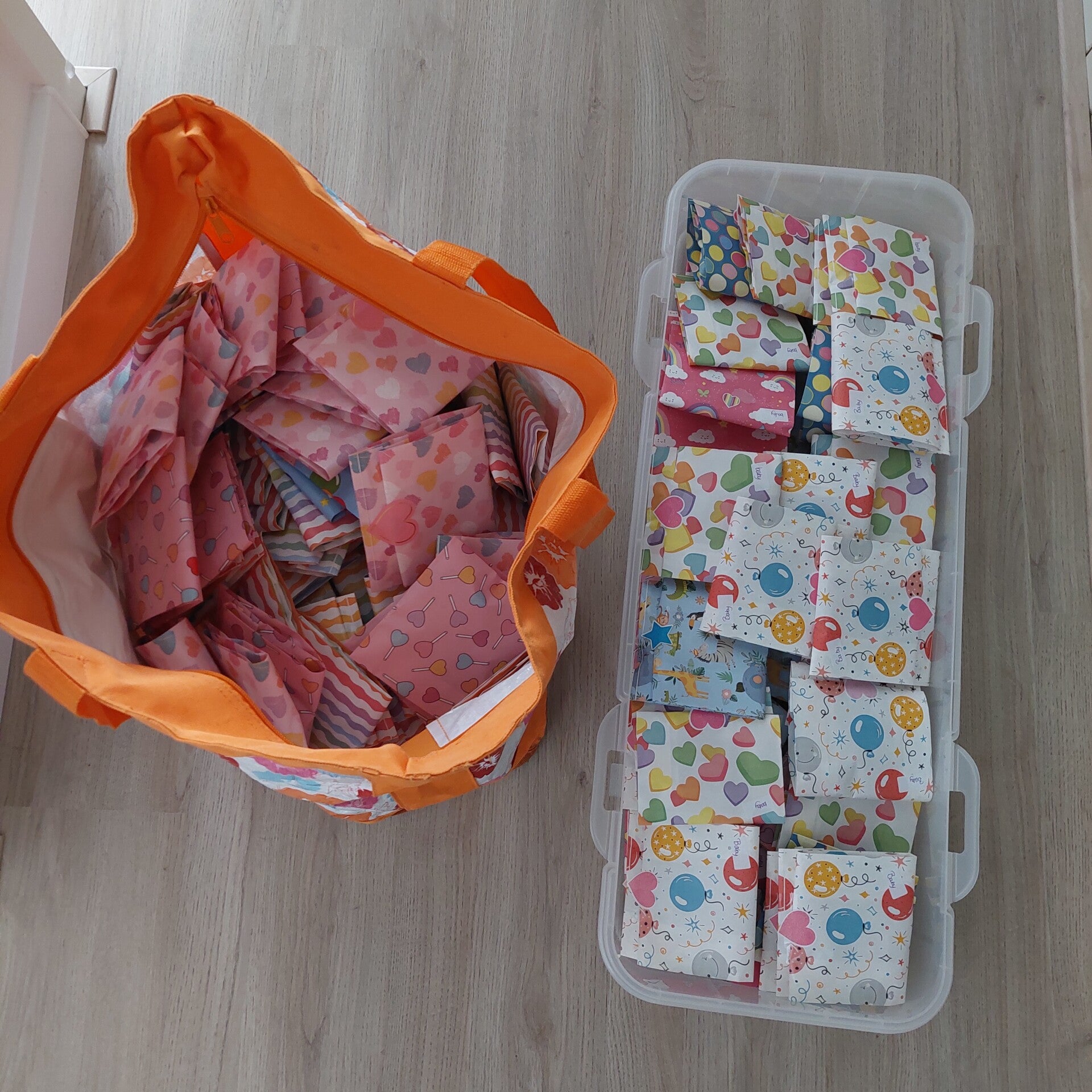 ik zorg er dan voor dat je verschillende zakjes krijgt zodat je niet allemaal dubbele spulletjes krijgt.