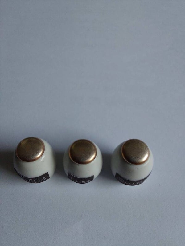 Echt stenen potjes met de tekst koffie-thee-suiker
